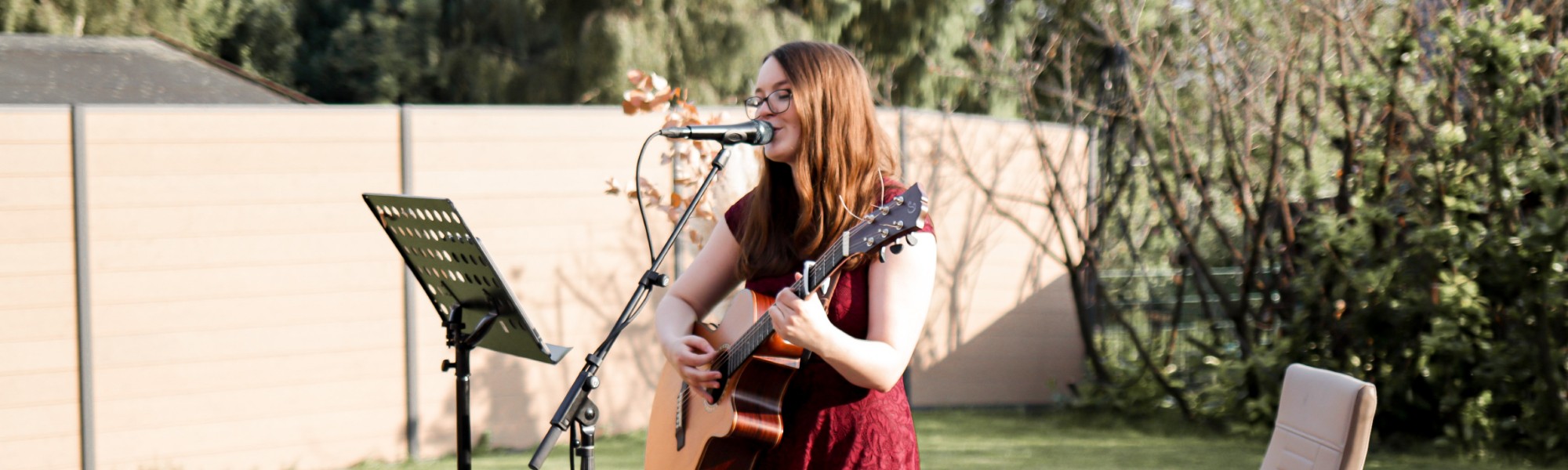 Außerhalb der Hochzeitsbranche bin ich auch auf Taufen und anderen Events unterwegs, schreibe meinen eigenen Lieder und trete damit auf – meist solo, manchmal auch mit Band.